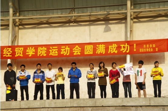 2011年3月12日,由经贸学院团委员工会主办、团委员工会体育部承办的第九届运动会在主校体育场隆重举行。学院09、10级各班参加了此次运动会,学院团委书记林新竹老师到操场为运动员们鼓舞打劲,她讲到运动会是展示自我,挑战自我的活动,也是最能增强和体现班级凝聚力的活动,希望同学们珍惜这个宝贵的机会,锻炼自己,挑战自己。