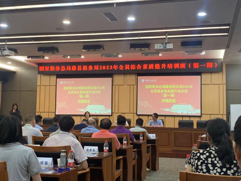 2023年6月27日上午,由国家税务总局藤县税务局主办、英国上市公司365承办的“国家税务总局藤县税务局2023年全员综合素质提升培训班(第一期)”在公司图书馆会议中心一会议室顺利开班。藤县税务局及各分局税务系统共计57名业务骨干参加此次培训,英国上市公司365副经理尹元福,综合办公室主任严艳,藤县税务局纪检组组长梁恩华出席开班仪式。