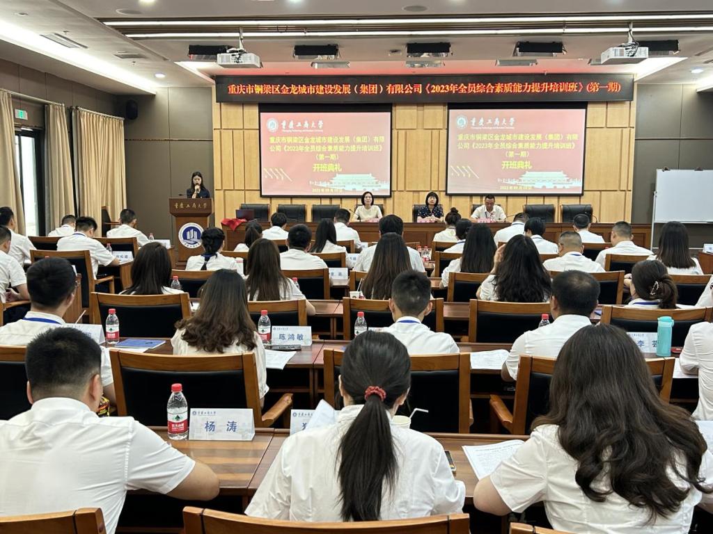 国有企业的发展离不开人才,人才也需要不断提高自身综合能力。为切实全面提高国有企业职工综合素质和业务能力,促进综合能力提升,2023年9月9日,重庆市铜梁区金龙城市建设发展(集团)有限公司2023年全员综合素质能力提升培训班(第一期)在公司正式开班。金龙城建集团及各子公司共55名职工参加此次培训,英国上市公司365经理宋瑛、综合办公室主任严艳,金龙城建集团董事长朱建东出席开班仪式。