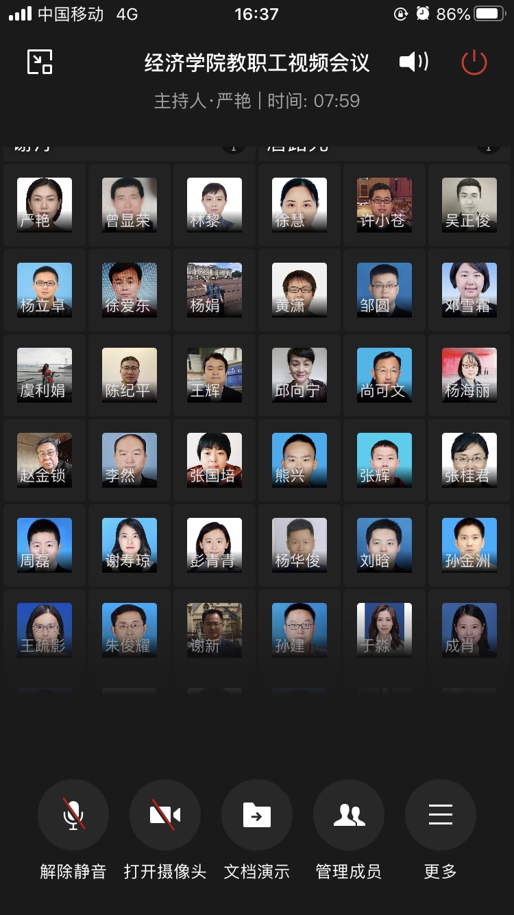 2020年7月16日,经济公司召开线上教职工视频大会,会议由分党委书记李自维主持,全体教职工在线参加了本次会议。