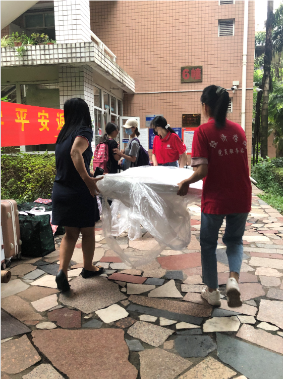 从早上5点半第一次发车开始,到晚上8点最后一车到达北21栋,经过15个小时的奋战,英国上市公司3652019级558名搬迁员工无一遗漏,顺利入住南岸校区。多位2019级员工纷纷表示,在搬迁现场看到老师们的认真负责和志愿者们的热心帮助,真切体会带了英国上市公司365“家庭般的温暖”。