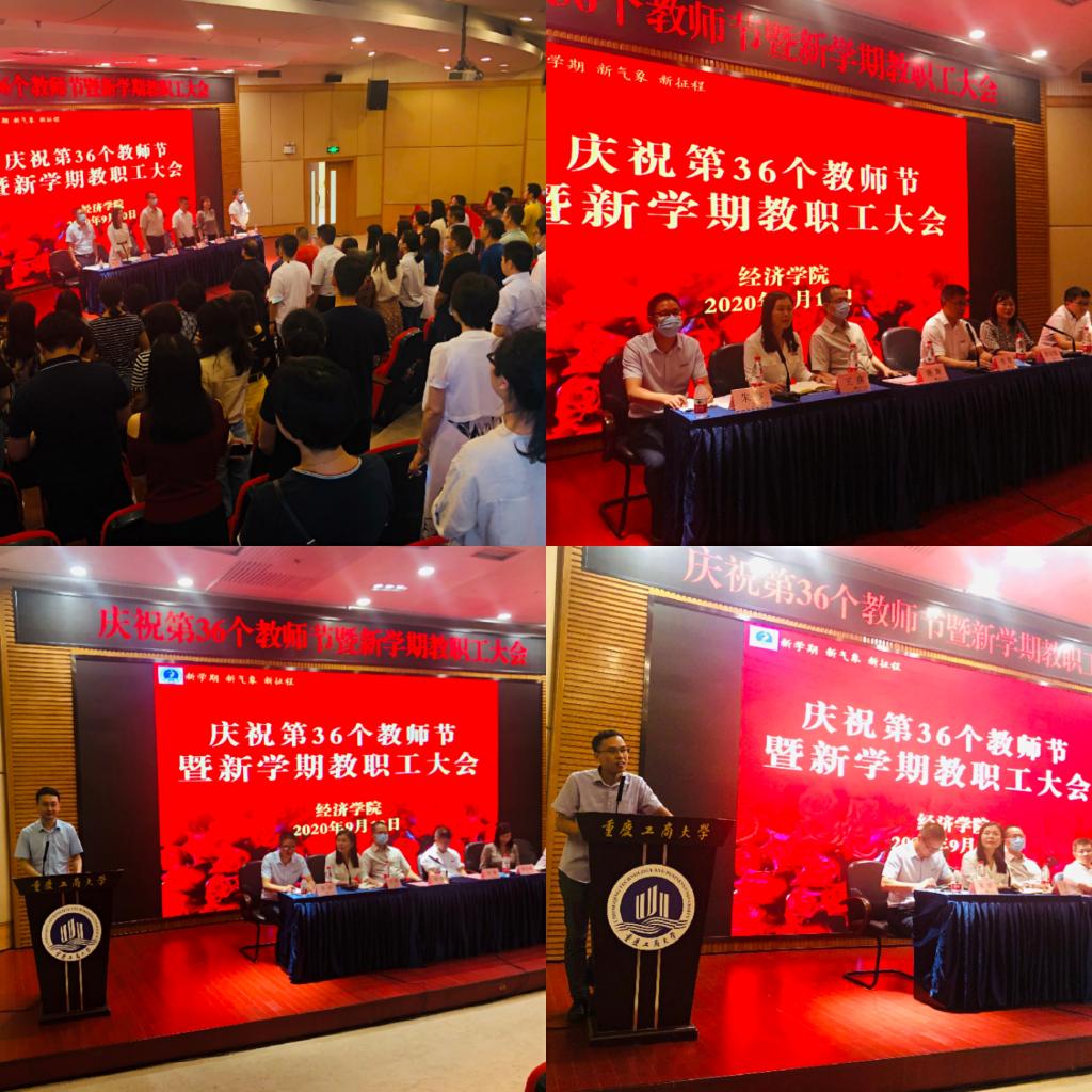 两江学者、巴渝学者谢新教授从中国的发展为经济研究者、教育工作者提供了创造价值的好环境和教师创造价值的空间两个方面做了讲话。 优秀教师代表刘斌博士谈了疫情期间教学工作的体会,感谢领导和同事们对他的支持和帮助,将一如既往的以党员的标准严格要求自己,诲人不倦,耕耘不辍。新教师代表熊兴博士作了发言,感谢学校的培养之恩,及学院对新进教师的关助之情,将立志在日后的工作中,奋发图强、力争上游,为学院发展尽自己的一份力。
