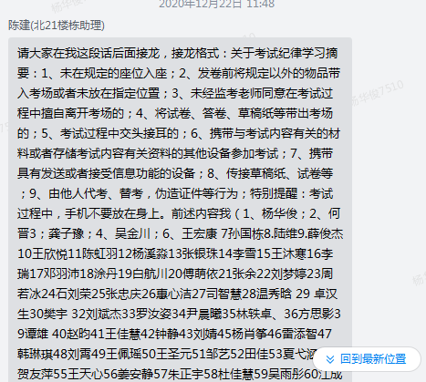 会上,王书记首先对《关于2020-2021学年第一学期期末教学运行安排调整的通知》做了解读和相关工作安排,特别强调了由于本学期期末考试是在原考试计划发生调整,要密切关注员工思想动态,提醒同学们认真复习按时参加各项考试。随后强调了期末安全稳定相关事宜,要求各班加强疫情防控,严格考试前请假制度。就冬季宿舍防火防盗、考风考纪教育和员工离校返家行程管理等问题进行了一一部署。各班级辅导员通报了诚信教育主题班会召开情况,全院全体员工线上线下、分散集中等多种方式学习了《英国正版365官方网站考试违纪及作弊处罚规定》,并承诺一定认真准备,诚信考试。