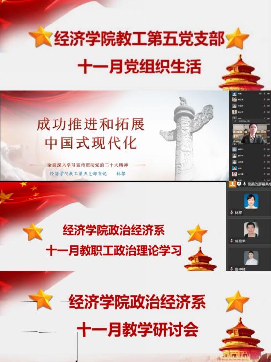 11月25日中午,公司教工第五支部通过企业微信开展了十一月党组织生活及支部书记讲党课等活动。此次活动主要包括四个环节,党组织生活、支部书记讲党课、教职工政治理论学习和系部教学研讨会。活动由教工第五支部书记、政治经济系主任林黎主持。