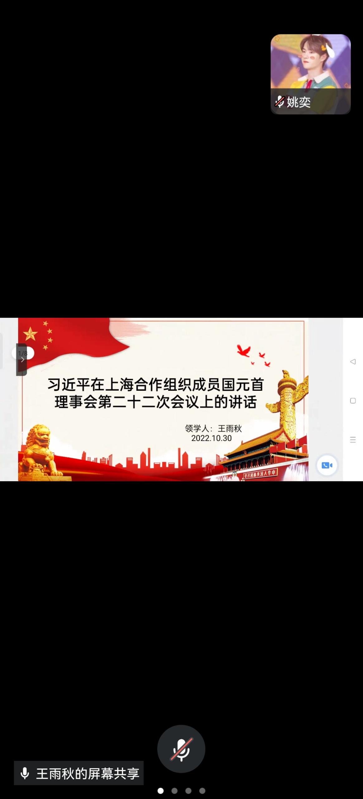 活动有三项议程。会议议程一,喻智成老师为全体党员介绍了委委员、纪委委员酝酿产生办法,经过支部全体党员推荐,产生了员工二支部推荐学院“两委”委员名单。会议议程二,由20级的三位党小组代表领学10月的组织生活学习资料。王雨秋同学针对《习近平在上海合作国讲话》展开领学,帮助同志们加深理解互信、互利、平等、协商、尊重多样文明、谋求共同发展的“上海精神”;谢桂兰同学针对《习近平:在复兴之路上坚定前行——《复兴文库》序言》展开领学,通过研读“序言”以及“文库”中部分内容,坚定同志们的历史自信、增强历史使命感;赵露佳同志针对《习近平在参观“奋进新时代”主题成就展时的重要讲话精神》展开领学,聚焦新时代十年党和国家事业取得的伟大成就和变革,激发同志们继续奋进前行。会议议程三,由19级的三位党小组代表交流学习心得,党员同学们都提到百年来我们党经受住了各个方面的风险挑战,感受到新时代党和国家在一步一步变得更好,深入领悟了中国共产党伟大的精神力量与群众力量,未来将为实现中华民族伟大复兴的中国梦贡献我们这一代人的智慧和力量。
