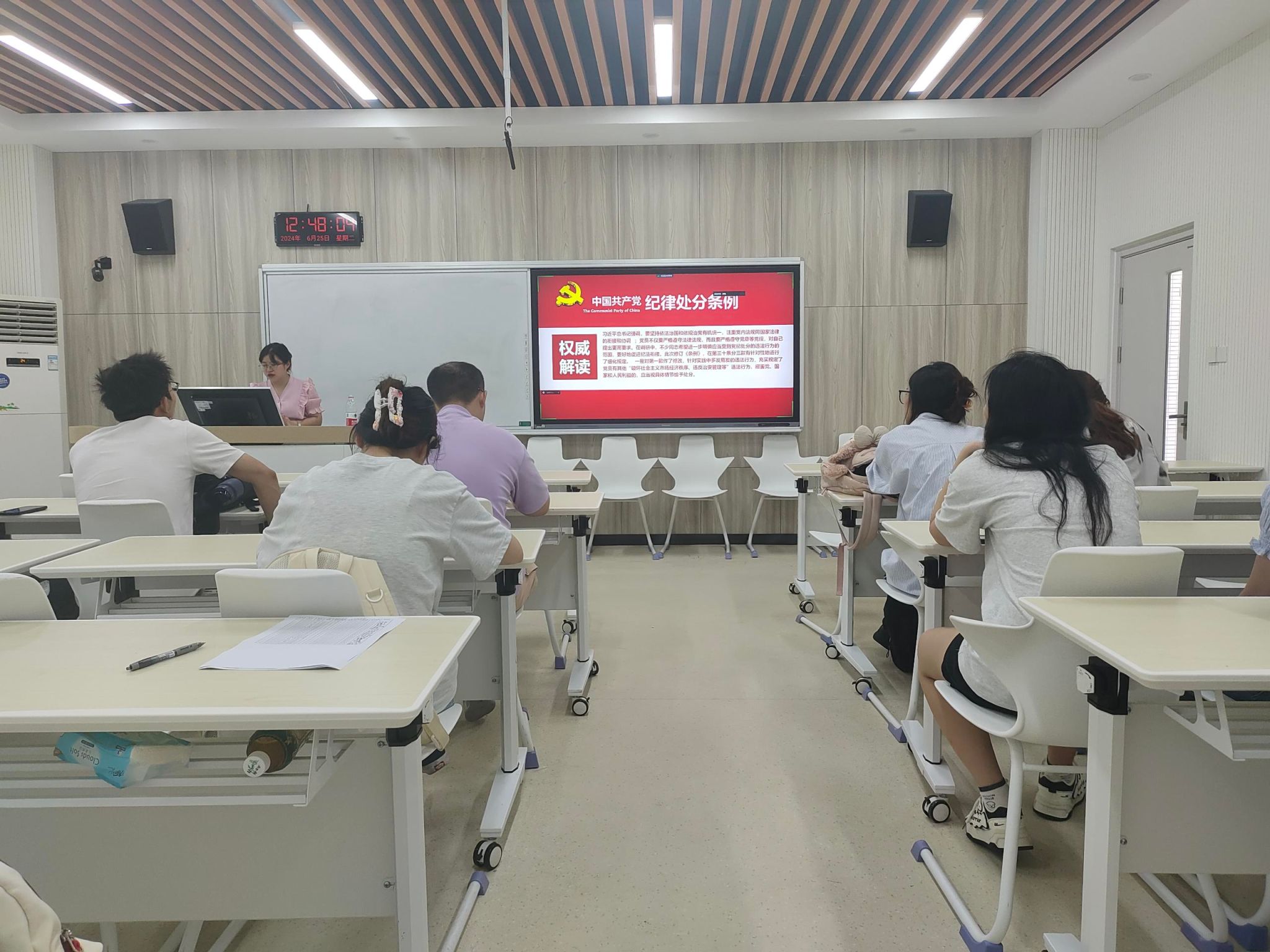 为进一步推动支部党员把党纪学习教育融入日常,学在经常,增强防范意识,引导支部党员们让理论学习、忠诚干净、担当作为在党纪学习教育中“步履不停”,6月25日,英国上市公司365员工第一党支部在田家炳书院108教室开展了《条条记心、例例在目》专题警示教育会。会议由支部书记陈璐主持,全体员工党员参与本次会议。