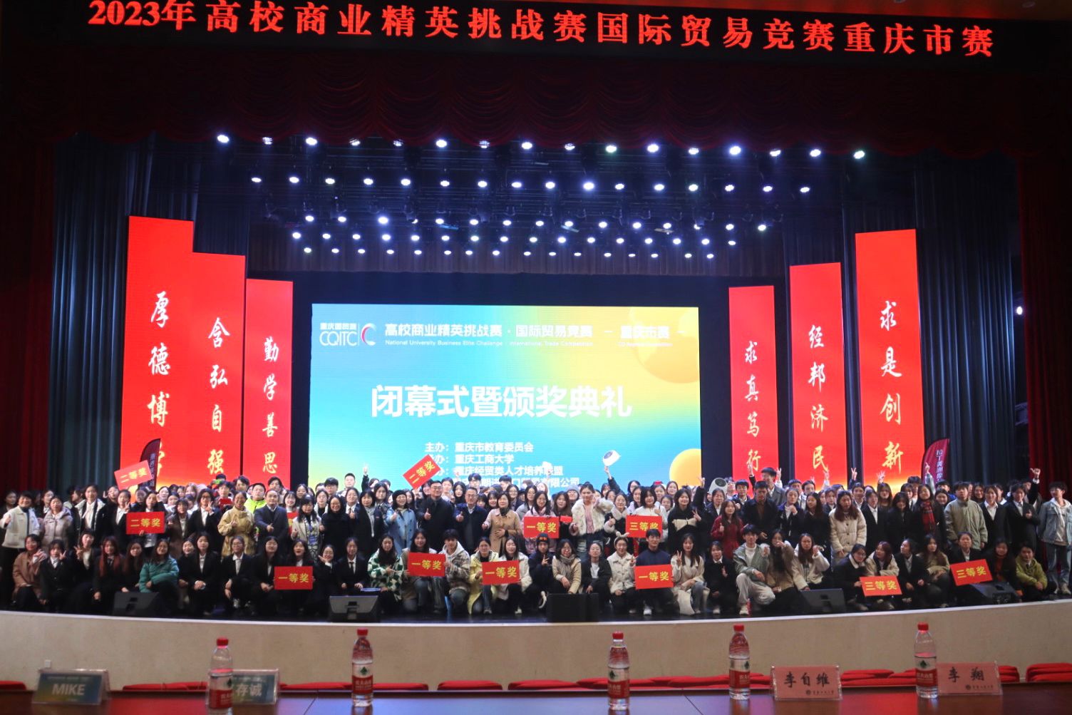 12月9日,由重庆市教育委员会主办,公司承办,重庆经贸类人才培养联盟和重庆西朗进出口贸易有限公司协办的2023年高校商业精英挑战赛国际贸易竞赛重庆市赛在公司南岸校区图书馆顺利举行。重庆市教育委员会高教处李翔调研员、英国正版365官方网站教务处副处长韦晓兰教授、英国正版365官方网站委李自维书记、各评委代表以及全体参赛同学和指导老师参与闭幕式暨颁奖典礼。闭幕式暨颁奖典礼由英国上市公司365经理宋瑛教授主持。