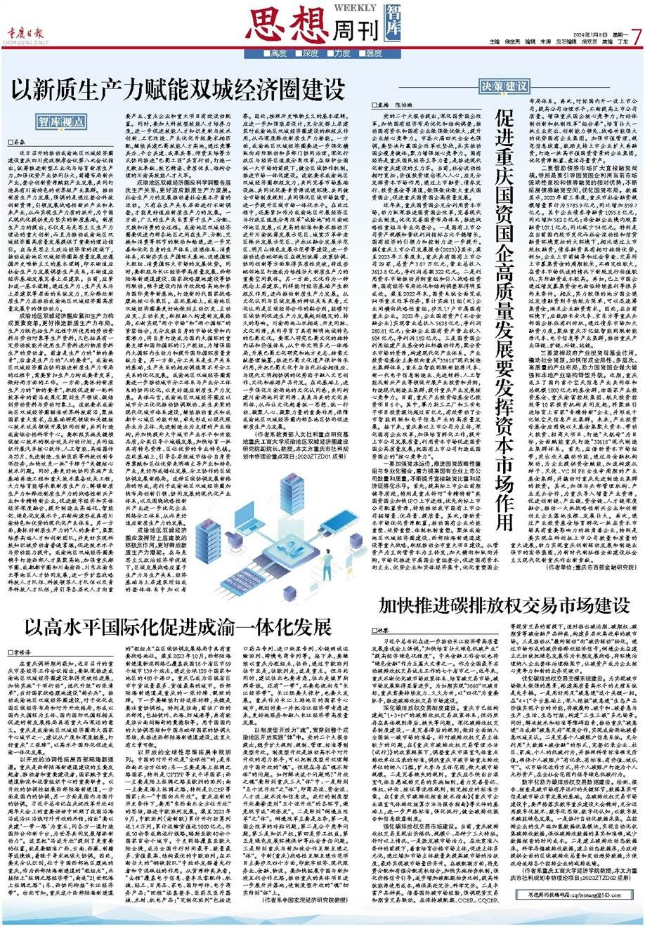 强化碳排放权交易市场建设。当前,重庆碳排放权交易呈现出价格低、规模小、品种少三大特征。针对以上情况,一是激发碳市场活力。在放宽准入条件的前提下,着重培育合格市场主体,促进主体多元化,通过增加市场主体数量来提高碳市场的活跃度,最终实现碳市场量价齐升。在碳配额方面,将免费分配和有偿分配有机结合,加快实施拍卖机制,强化价格信号引导,逐步增加碳配额拍卖比例,提高传统能源使用成本,确保高效定价、科学定价。二是丰富产品种类。借鉴国际碳市场经验,强调现货交易和期货交易联动。在保持碳配额、CCER、CQCER等现货交易的前提下,适时推出碳远期、碳期权、碳期货等碳金融产品种类,构建多层次高效率的碳市场。三是推动从“履约驱动”向“碳价驱动”转化。通过市场形成的碳价格释放经济信号,倒逼企业在建立之初就把绿色发展作为长期发展战略,将环境治理纳入企业整体治理框架中,让碳资产成为企业核心竞争力和新的业务突破口。
