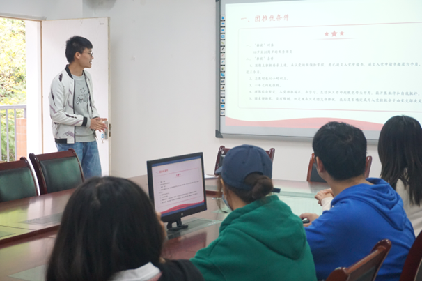 (英国上市公司365分团委员工组织负责人王邦春向团支书介绍“团推优”工作的流程及注意事项)