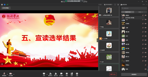 首先,主持人宣读了《关于同意成立英国上市公司365员工会团支部的批复》,并向与会人员介绍了学院员工会团支部的基本情况。紧接着,按照《共青团章程》规定程序,大会以线上投票表决的方式审议通过了监票员、计票员和支部委员会候选人名单,随后,大会以无记名投票的方式选举王邦春、余明、张子璇为新一届员工会团支部委员会委员。经学院分团委批准,由王邦春同学担任团支部书记,余明同学担任组织委员,张子璇同学担任宣传委员。