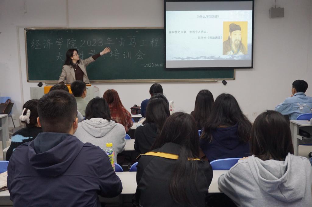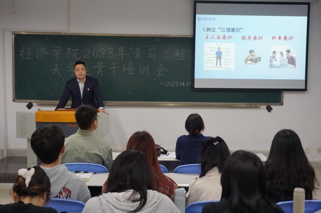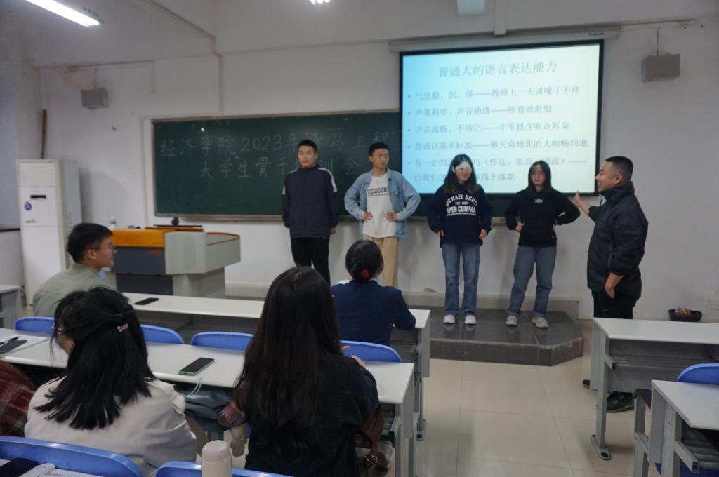 管理科学与工程学院封海粟老师为同学们带来“语言的艺术”课程,封老师在对语言技巧讲解的过程中伴有生动形象的演示,同学们主动参与其中,课堂氛围轻松愉快。同学们在与老师的积极互动下,逐渐掌握正确的发音技巧,深刻感受语言的魅力,更加深入地体会到了语言艺术的重要性。马克思主义学院魏新欣老师为同学们带来“第二堂课——学习贯彻党的二十大精神,努力成为堪当民族复兴大任的时代新人”的主题学习。魏老师详细讲解了为什么要了解党史、了解党史的重要途径以及中国百年党史的三条发展脉络。通过对党史进行梳理的过程中,坚定同学们担当民族复兴大任的决心和信心。同时,魏老师还推荐大家积极阅读党的二十大精神相关书籍,从中汲取精神力量,汇聚成实现中华民族伟大复兴中国梦的涓涓细流。委白海龙副书记为大家开展“青春正当时,聚力勇担当”员工干部专题培训。白书记指出,“不积跬步无以至千里,细节决定成败,作为员工干部,同学们更应该从细节出发,做好每一项工作”。白书记鼓励经院青年学子树立主人翁意识、服务意识和职责意识,教导大家主动思考、主动作为、主动反思,更好的践行青年马克思主义者精神,成为更理想的自己。