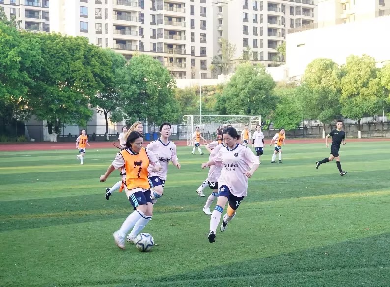 在小组赛中,经济女足一路势如破竹,以严丝合缝的防守体系和全力以赴的拼搏精神,踢出了气势,战出了风采,小组赛三胜零负的傲人战绩充分展现了经济女足卓越的团队实力和昂扬的精神风貌,也足以使她们步入决赛的战场。总决赛由公司女足对战体育学院,比赛开始,球员们迅速进入状态,双方球员你来我往,比赛十分激烈,经济女足队员们始终团结一致,拼搏奋斗,在赛场上赛出了她们的激情与坚韧。比赛已然结束,但经济女足前进的脚步不会就此停下,她们将继续追寻心中热爱,弘扬体育精神。