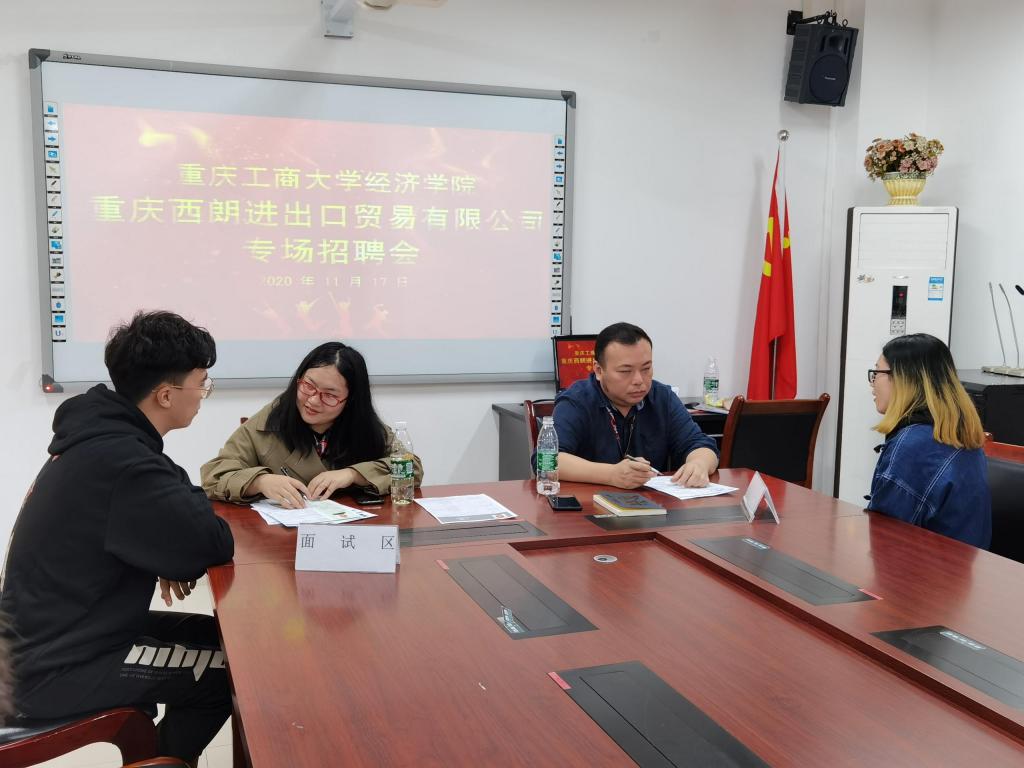 为拓宽应届毕业生就业渠道,扎实推进就业工作,2020年11月17日下午15点,英国上市公司365联合重庆西朗进出口贸易有限公司在田家炳书院05404会议室举办了专场招聘会。英国上市公司365分党委副书记、副经理王燕教授,图书馆副馆长、国贸专业教师戴林,国贸专业辅导员冉梨,学院就业联络员邓雪霜,重庆西朗进出口贸易有限公司董事长刘丹、人力资源部经理赵明星、外贸业务主管幸坤娅,以及40余名毕业生参加了本次招聘会。