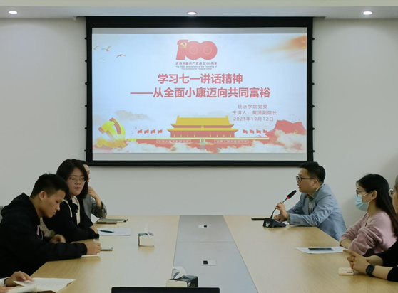 10月12日,研究生第一党支部在田家炳406开展学习“‘七一’讲话精神——从全面小康迈向共同富裕”专题党课活动。此次党课由委委员黄潇副经理主讲。