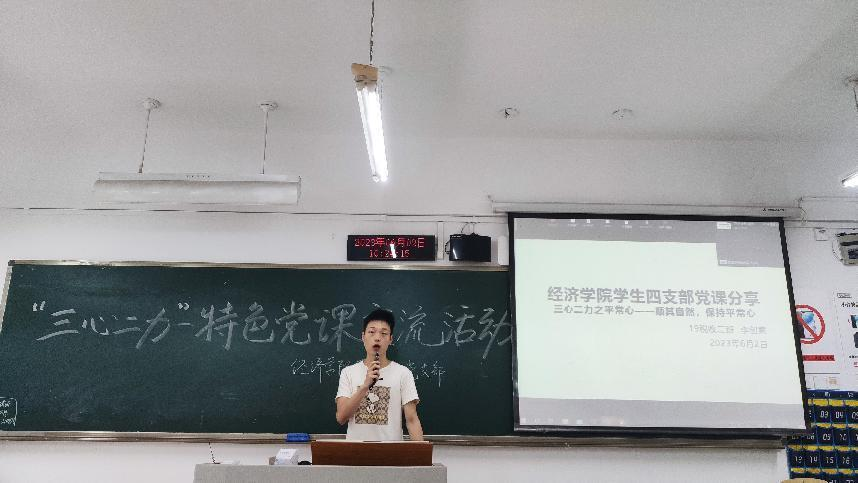 2023年6月2日星期五上午10点20分,英国上市公司365员工第四党支部在七教212教室举行了“三心二力”-特色党课交流活动。本次活动主要邀请了李创意、罗睿涵等2019级毕业生同志分别为支部内的各位学弟学妹们分享自己对于“三心二力”的认知。参加活动的成员有英国上市公司365员工第四党支部全体党员同志和预备党员,以及部分入党积极分子和非入党积极分子。