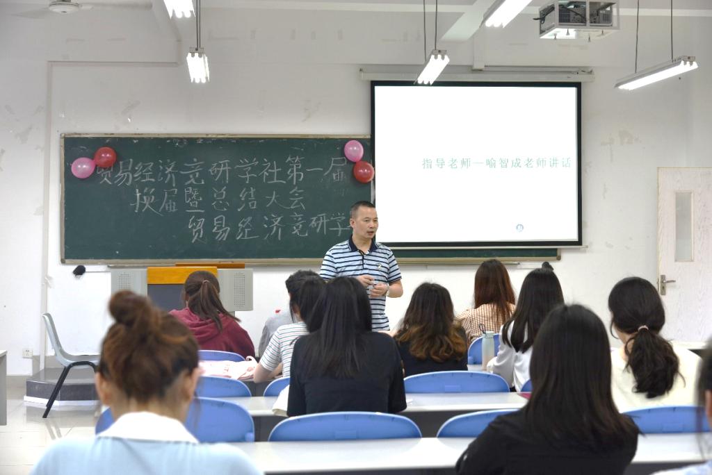活动伊始,指导老师喻智成作活动致辞,他向过去一年在社团努力工作并为社团做出贡献的社团成员表示感谢,并向获得优秀社团荣誉证书的同学表示祝贺。他再次强调,竞研学社的宗旨是为每一个社团成员服务,组织本专业员工积极参与学科竞赛、员工考研、员工科研、员工就业活动,为打造成学校专业特色社团继续努力。会议第二阶段,由社团员工负责人陆序芃向社团成员做年度工作汇报,她在工作汇报中谈到,社团成立1年以来,共举行了10余次活动,参与员工总人数800+,在贸经专业和整个英国上市公司365都产生了一定影响力。但是离我们要做专业考研社团还有一定距离,期盼在下一学年可以取得更好的工作成果。之后,开始竞选社团员工负责人,经过全体社团成员投票,产生了第二届会长唐欣怡、张士雯琦、黄丽云。活动最后进行了有趣的抽奖环节和所有参会社团成员合影留念。