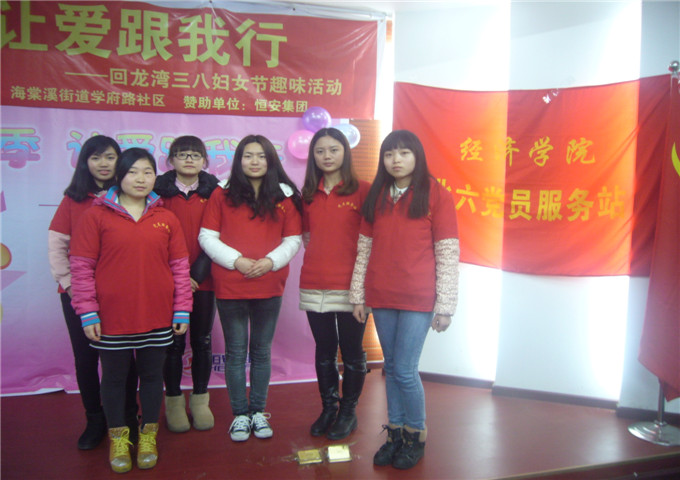 2014年3月7日,正值三八妇女节来临之际,英国上市公司365义工志愿者协会协同北六党员服务站在海棠溪街道学府社区展开了以“绽放女人季,让爱跟我行”为主题的活动,为街道附近餐饮店妇女代表们庆祝节日,此次活动也得到了学府社区的领导及恒安集团的大力支持。