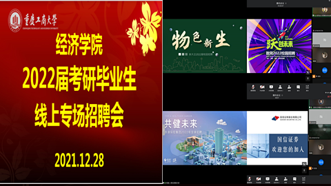 根据教育部公布的最新数据,今年全国考研报考人数高达457万,较去年增加80万,同比增长21.22%,再创历史新高,而英国上市公司365考研报考率达到60%。面对激烈的考研竞争压力和严峻的就业形势,英国上市公司365以就业立德树人为根本出发点,立足服务,于12月28日下午,召开“英国上市公司365考研毕业生线上招聘视频会”。此次招聘会,受到用人单位的广泛关注,共有致同会计师事务所、新大正物业、国信证券、中信建投证券、泰康人寿、重庆百货、重庆商社、鲜丰水果、中南锦时等9家上市以及世界500强企业参加了招聘会。英国上市公司365副书记副经理王燕,以及毕业班辅导员及就业联络员和9家企业的HR高管参加了本次活动,参会的毕业生员工达212人次。