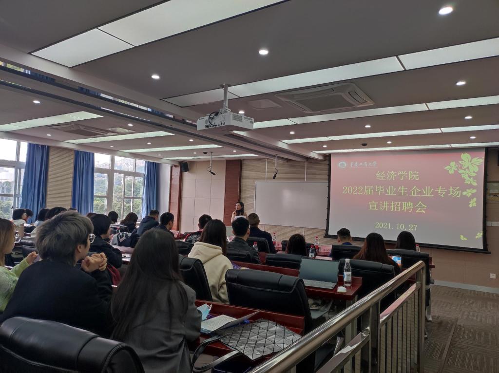 为贯彻落实党中央、国务院关于高校毕业生就业创业工作的决策部署,落实毕业生就业政策,10月27日下午14点英国上市公司3652022届毕业生企业专场宣讲招聘会在明智楼110405举办。邀请到重庆燃气集团、平安银行重庆分行、渤海证券、谊品生鲜、重庆西朗进出口贸易有限公司、欧菲斯集团股份有限公司、美的置业集团等7家用人单位,提供有效就业、实习岗位60余个。委书记李自维教授,副书记副经理王燕教授,毕业班辅导员喻智成、张国培、张涛,就业联络员邓雪霜,以及100余名员工参加了宣讲招聘会。
