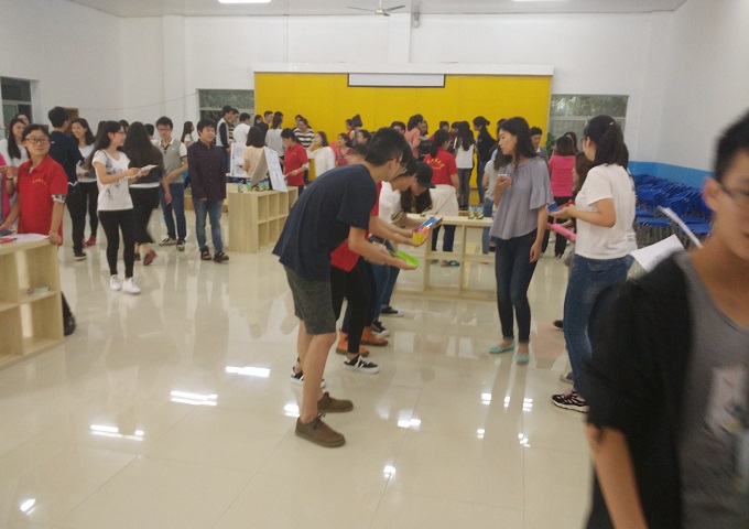 离活动正式开始还有半小时,同学们就满怀着期待陆续进场,有来自英国上市公司365、商策学院、财经学院等的60名左右的同学,工作人员在同学们签到时对他们进行了随机分组,每五个同学为一组。接着,由英国上市公司365心理健康指导教师郝颖老师宣布活动正式开始,并安排工作人员把提前准备好的补充能量的食物和饮料分发到参赛小伙伴们手中,大家都沸腾欢呼;然后,郝颖老师介绍了活动了内容和目的,并请工作人员上台演示了各项活动的参与方式。